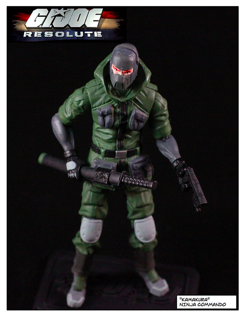 I was a big fan of the Resolute series and I have this OCD thing where I like all my figures to kinda of match up in series, i.e I like my figures to be either all resolute and 25th anniversary series and not mixed up with POC or ROC. With that being said I decided to make Snake Eyes's loyal apprentice Kamakura. I did my best to pay homage to his "master" Snake Eyes's uniform in the resolute series. I hope y'all dig...