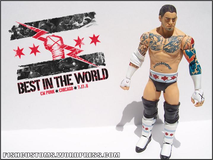 This is a custom of CM Punk from his title match at Money in the Bank 2011. The figure is hand painted from head to toe and includes a sculpted hair style to resemble the look at the ppv.