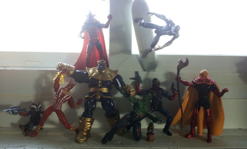 I feel like a kid with this thread, but that's a good thing! I got a few other goodies, extra Sentinel, Iron Man 6 inchers, etc. But the IM helmet to top of my display stand in the pic below was the winner! Also got a handful of cosmic MU stuff I quickly threw together this morning. Infinity gauntlet is missing because it's on my Iron Man. :P