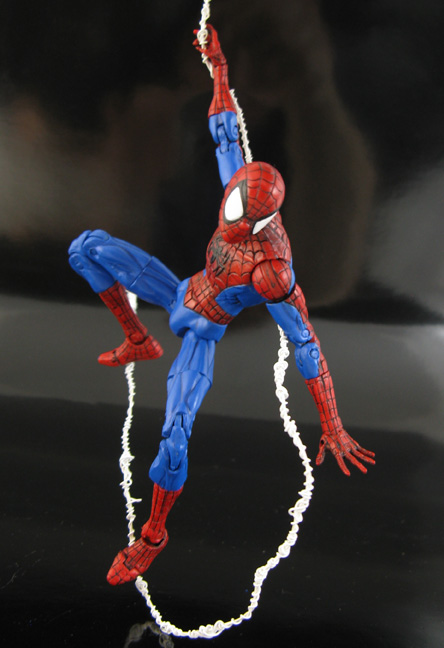 Here's the Spectacular Spiderman done 6" Marvel Legends style in his classic red and blue costume. After so many people requested him since seeing the black and red version they wanted this one. His upper torso from a shoot-n-trap Spiderman, arms and legs from a Spider Sense Spiderman, and modded shoulders/hips so he can get super articulated. I added web-blasts, magnets to his feet, and barrel to throw, and a wire web-line!
