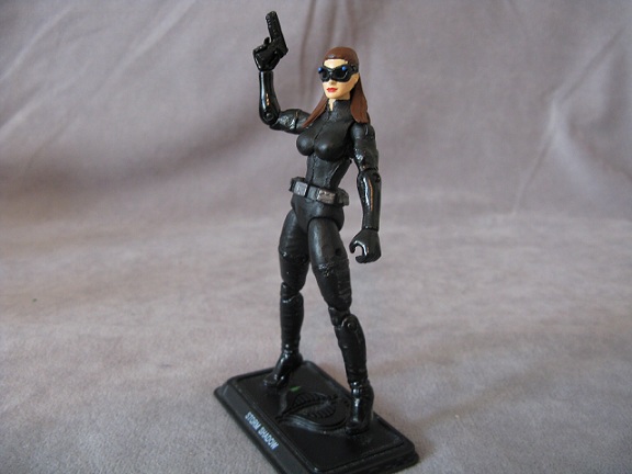 So, seen Dark Knight Rises yet? To be honest, I haven't kept up as well as I would like with customs the past few weeks. Been more making than looking. But, from what I've seen, aside from a few quick fixes, people have been making Bane more than Catwoman. Maybe that puts me in the minority that actually likes the look. But, I decided to do something I haven't ever had interest in doing before. Make a character from a movie and post it the weekend of the movie. So, I pulled set pics and looked at the official released figures and pulled her together. I watched the movie to see what toys she had, but all she did was keep stealing other people's guns. So, I gave her a gun. I think my only notable error was I make her gloves go a little too high.