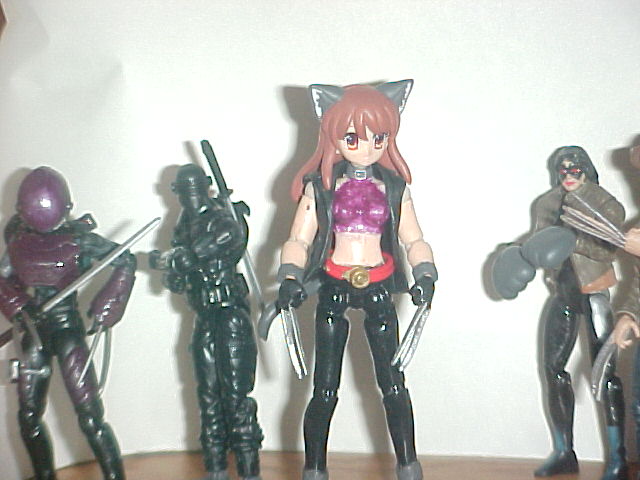 She was just a simple japanese candy kit from some random anime I forget now that I got for clearance on ebay. Then I added Snake Eyes feet, and trimmed down logan hands form XMO. The jacket is from the TRU exclusive XMO set Cowboy hat wolverine. The belt is just an iron grenadier belt with sword chains trimmed off.