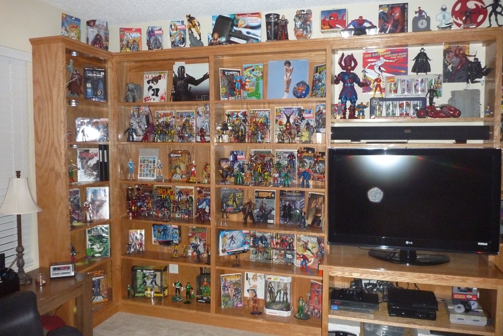 I know I lucked up on getting a large room. But, as they say, no matter how much space you have it will soon be filled. I added some more pics to get closer to the shelves. I was amazed at what my old man could do. I wish I had paid more attention as a kid instead of crying because I wanted to watch Spider-Man and his Amazing Friends instead of holding boards to be cut and hold tape measures. The shelf with the Hot Toys and Stay Puff is just a 72" shelf from Lowes with brackets so nothing fancy. If anyone was wondering, the file cabinets below the Hot Toys are full of comics. Everyone who sees it always wonders!! I look forward to seeing more Arkers stuff!!!
