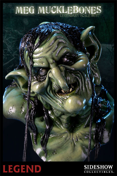 Meg Mucklebones Legendary Scale Bust. Each piece is individually painted and finished, each with its own unique quality and detail that is the trademark of a handcrafted Sideshow Collectibles bust. Cast in highest quality polystone, hand-finished and hand-painted to exacting standards, the Meg Mucklebones Legendary Scale bust is a perfect addition to any display.