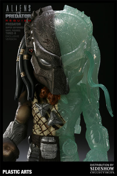 Sideshow Collectibles is proud to bring you Plastic Arts' line of high-quality vinyl collectibles! Designed by Three-B, the 'Aliens VS Predator: Requiem' line of vinyl figures capture each character in a uniquely stylized design and come complete with trademark accessories. The Predator Super Deformed Vinyl Figure - Special Version stands over 8 inches high and includes a switch-out portrait for masked or unmasked display.