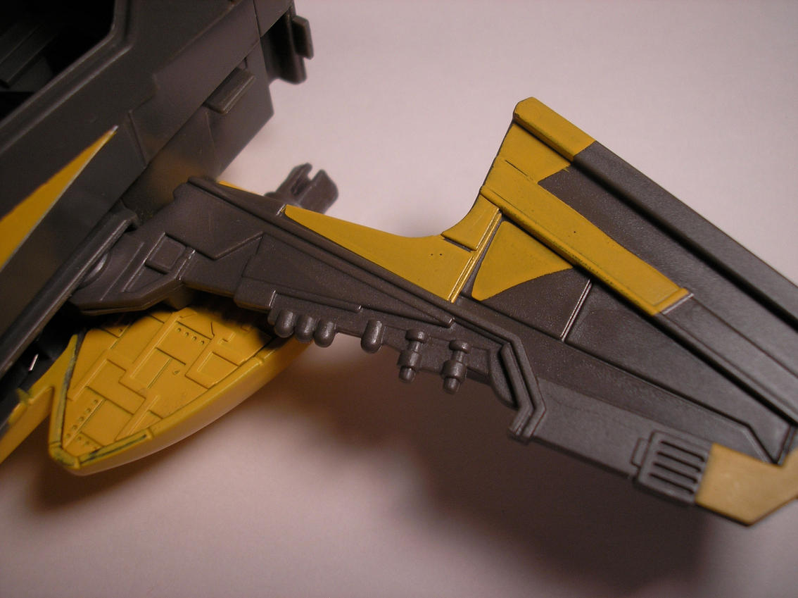 The droid fighter looks quite aggressive and is an impressive piece on it's own. When removed from the main fighter, 2 wings automatically swing back. The wings feature a high amount of sculpted detail with intricate panel lines. It's sturdy and the cockpit secures the droid quite well.