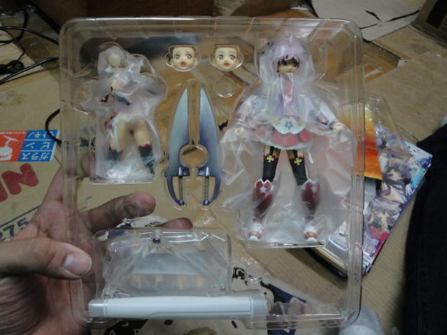 The special edition of Queen's Blade comes with: PSP game soft, Vocal collections CD, and fully articulated FIGMA figure of the new heroine, CUTE. (Yes, that is her name) And as a special present from Yodobashi Camera - Akiba, they gave me a small visual file with all the characters! (Hoo rah!)