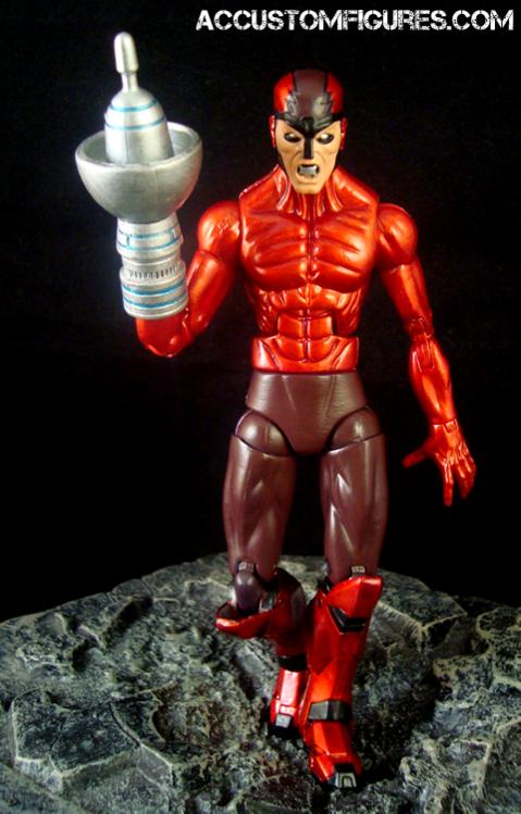 I really like the simplicity of the original Marvel Legends Klaw design, and of the character himself. For this one I wanted to put an original spin on him, and make him just a bit more formidable an adversary for the Avengers. I gave this Klaw a second Super Sonic Blaster, and some serious robotic legs that add to his presence. The original Sonic Blaster is magnetic and the new one slips on and locks in place. I gave Klaw a really cool and clean metallic paint job and added some deeper tones of purple to stick with the classic motif. Now this Klaw can shatter Avengers eardrums all day long! Enjoy!