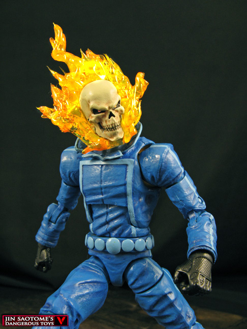 Ready for some supernatural action here's a brand new custom Ghost Rider Marvel Legends Infinite figure for you. Based on Johnny Blaze's classic Ghost Rider character and sporting his blue outfit this figure was created using the new Captain America Infinite A.I.M. figure, Ultimate Cap forearms, Dark Knight hands, modded collar, ML 2012 Ghost Rider skull, and BAF Green Goblin arm flames with hotglue extensions. I made the head and flame collar removable so you could add the custom Johnny Blaze head to get him in a human form as well. Now all he needs is a 1:12 scale chopper ride and this custom Ghost Rider is ready to take on any challenge!