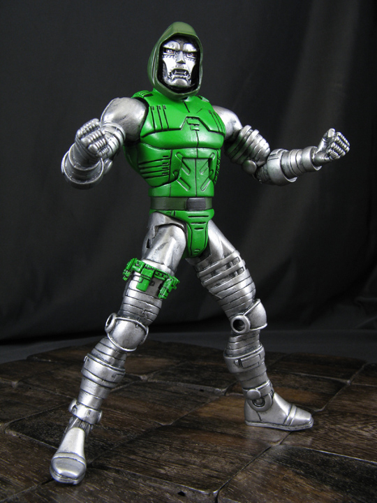 All hail DOOM! The tyrant has arrived in all his un-caped glory with this Secret Wars Dr Doom custom Marvel Legends figures based upon his comic book/vintage toy appearance. He was created using a DC Universe Sportsmaster upper body, Cyborg limbs and waist, and custom cast Dr Doom head. All his armor parts were sculpted on and I created a double-barreled ray gun for him like the original had. He also gets a beam-blast to take down his enemies. Sorry but there's no lenticular shield this time! Doctor Doom was painted using Testors Model Master Acrylic, Formula P3, and Citadel metallics.