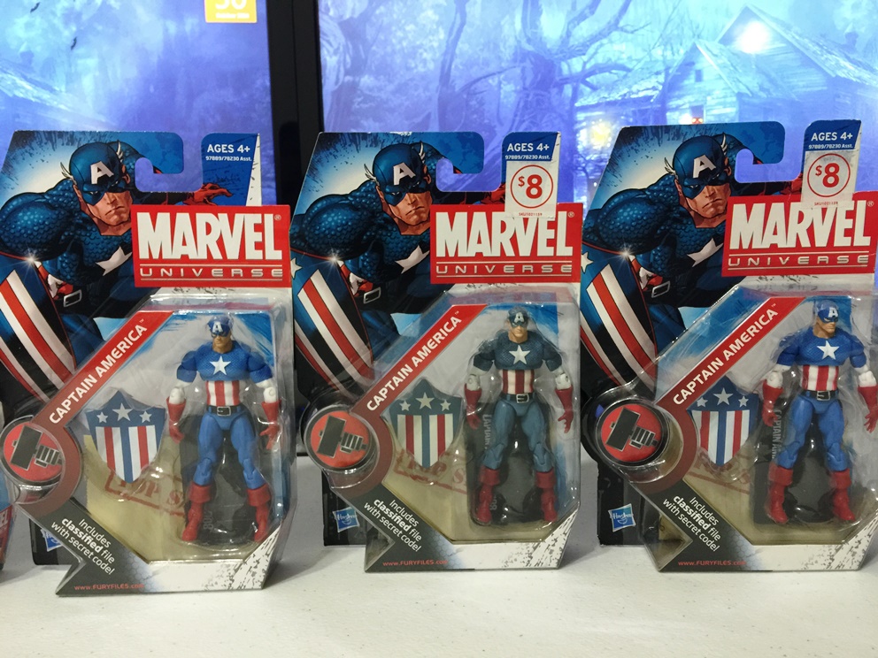 These are all just Family Dollar "sticker" ($8 sticker) variants. I just have to have them... The Captain America and the Thor though are actual color variants. I think I posted it a while back but the first Cap one is matte and the second one is glossy and the family dollar ones are a lighter blue version as well as the regular matte version,. Look at the last two close up pics for better reference.