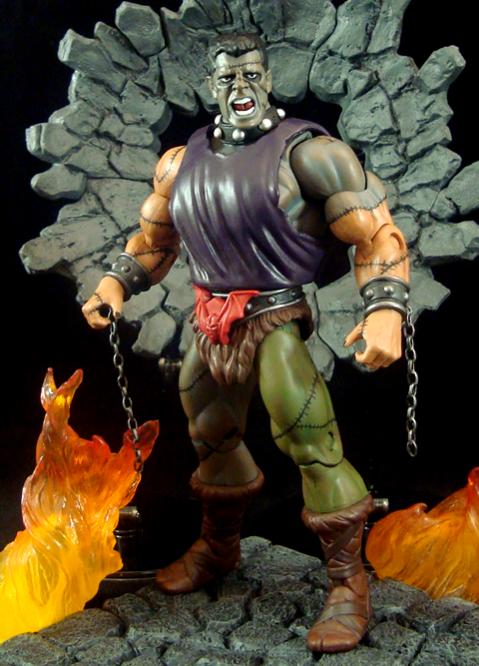 MON-STOR SMASH!!! Adding another character to my original Masters of the Universe collection comes Mon-Stor! One of Hordak’s horrible experiments gone wrong, Mon-Stor is the the product of Hordak’s League of Science attempt to “recycle” dead Eternians. Gross! Mon-Stor is made up of dozens of dead Eternian body parts, all sewn together into a monstrous mess. Even though he wears the symbol of Hordak, on the battlefield Mon-Stor serves no one! He will just as quickly cleave the head of Hordak as rip the arms off He-Man! Mon-Stor comes with his Horde Cleaver, and has real chains that used to bind him, hanging from his wrist gauntlets. Mon-Stor has a deeply shaded decaying and rotting flesh paint job, topped off with bright Horde highlights!