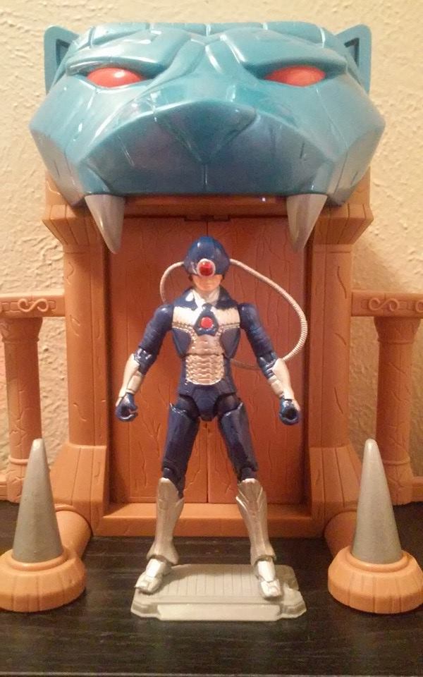 Refrax was one of the first villains I came up with that I really liked. The idea came from the fact that I have never been the biggest fan of Cyclops but I thought he would make a better villain. As I was developing Saber and building his rogues gallery, I revisited that idea and began tweaking the character. I was also influenced by Tri-Klops' portrayal in the 2002 MOTU cartoon. Every part of this figure was found at clearance which was very helpful. I swapped the arms on the Mark 5 body with the Maverick so he had better shoulder articulation.