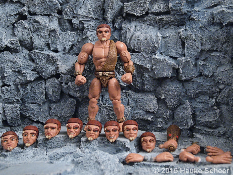 I made a new version of my caveman action figure. This is the first figure that has ball joints only. I am quite happy. The figure is the easiest to assemble and very sturdy. It is also easy to swap parts. I used this figure for a stop motion animation. The parts shown here were used to create different gestures and emotions.