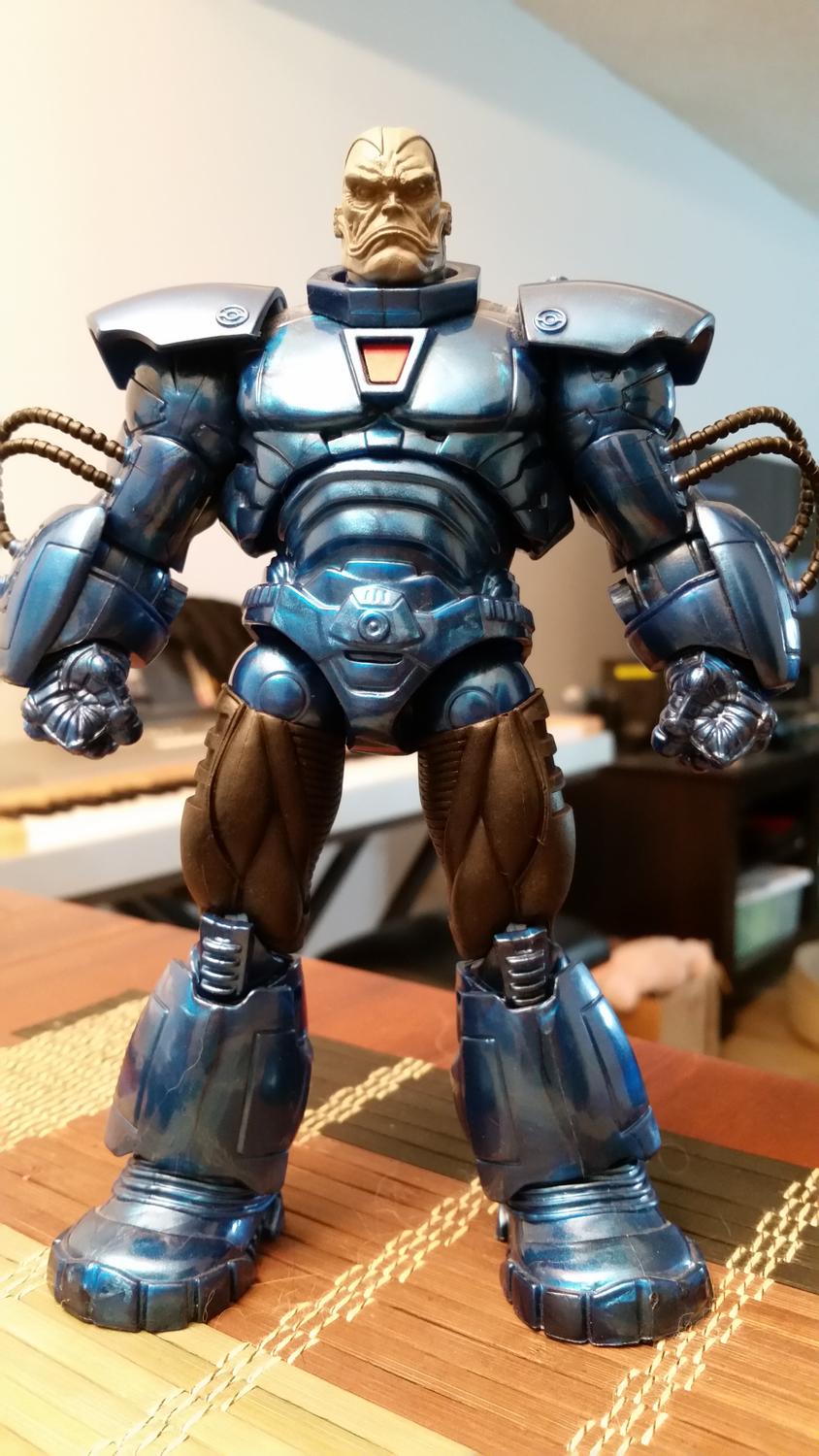 Only a casual Legends collector/customizer nowadays, but the upcoming X-Men Juggs wave was too good for me to pass up. I don't have many X villains in my collection, so I decided to cobble together an Apocalypse using my cheap from China spare Iron Monger BAF body and a shrunken Apocalypse head I found on ebay. The Iron Monger body's stock legs are too short, so to stretch him up a bit, a simple swap out for some repainted Red Onslaught BAF thighs did the trick. I'll be adding an "A" belt buckle and painting up his head eventually. After I got him together, I found older pics of other folks using the Monger BAF as an Apocalypse base, but I think this is a first that addresses the stubby stock leg issue. Easy recipe if you have the parts and some black paint! Go nuts folks.