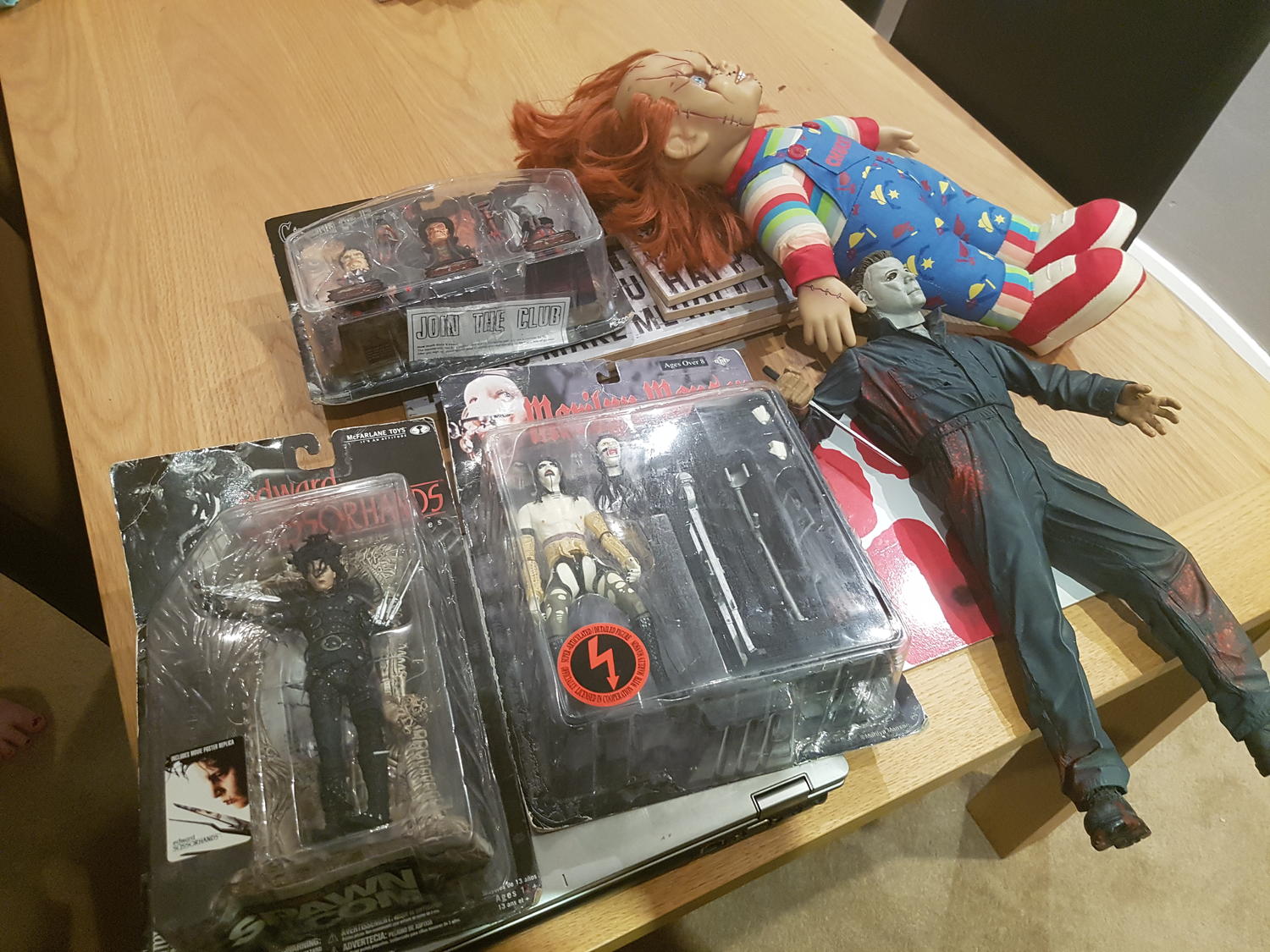 So, i have a few collectibles e.g marilyn manson, edward scissor hands, michael myers, chucky and a 3 in 1 ( picture attached). Had these for at least years....