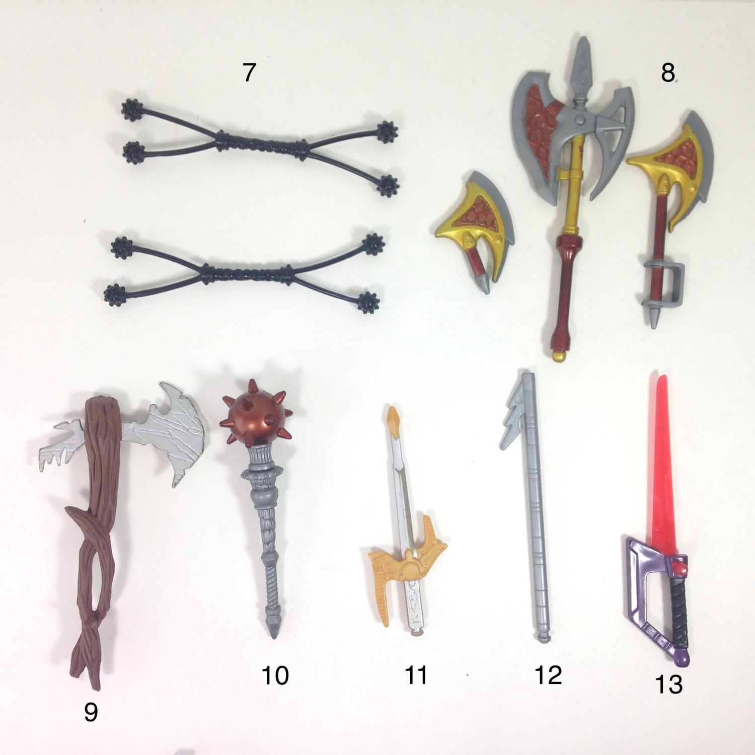 purchased a bunch of MOTU figures and these accessories came along with them. These are the ones I have left out of a week or so going through and ID'ing them. I've hit a wall! Any help would be greatly appreciated!