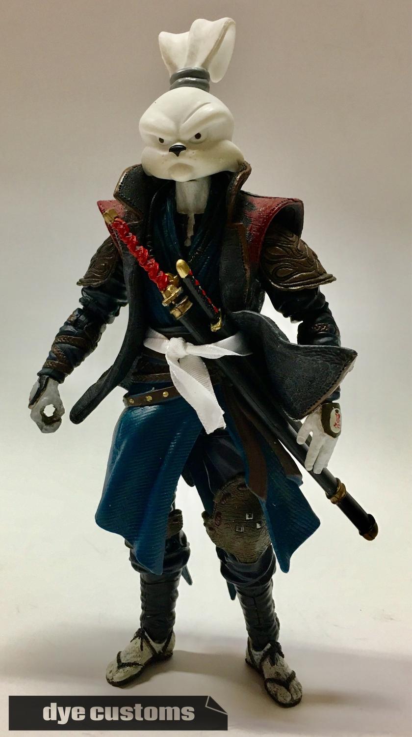 Here is my take on Usagi Yojimbo... His head is a TMNT Usagi. Hands, feet and jacket are from a McFarlane Onimusha 2 figure and the body is a Marvel Legends Dr. Strange. What I like about this figure is that it shows how just a small amount of painting mixed with the right parts can make a great custom!