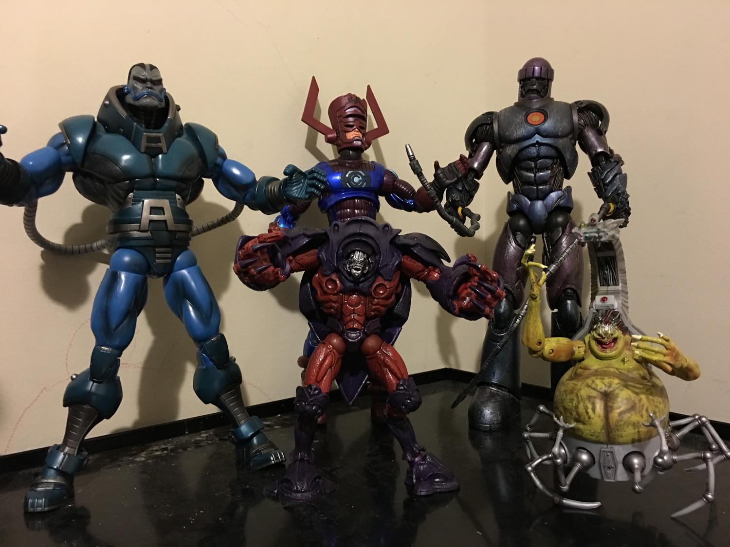 Completed the ToyBiz BAF's that I've been hunting for. Unfortunately Sinister and Black Panther were nearly impossible to find in the wild, or online for anything resembling cheap. My only regret is going cheap and getting a second hand torso for Galactus off EBay. It just doesn't look as great as it should. Mojo is pretty cool, the detail on this guy is amazing. The Sentinel is a load! I'm a little afraid to test too many of his joints, but he's imposing as heck, almost dwarfing Galactus. Giant Man and MODOK don't really interest me enough to go back and build. Maybe I can find MODOK cheap in EBay.