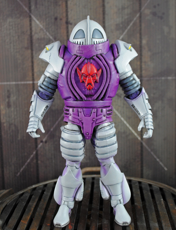 The Horde Enforcer character is based off the vintage line of Air Raiders toys, the Tyrants of Wind Enforcer! Originally a diminutive 1-inch tall figure I've recreated him in 7" MotUC scale using a Flogg body, Dark Knight Returns vest, Icarius boots, Lex Luthor power armor shoulder pads, and one of the spare alternate horde trooper head from General Sundar. Keep an eye out because I'll be making the orange and tank heroic Air Raiders too!
