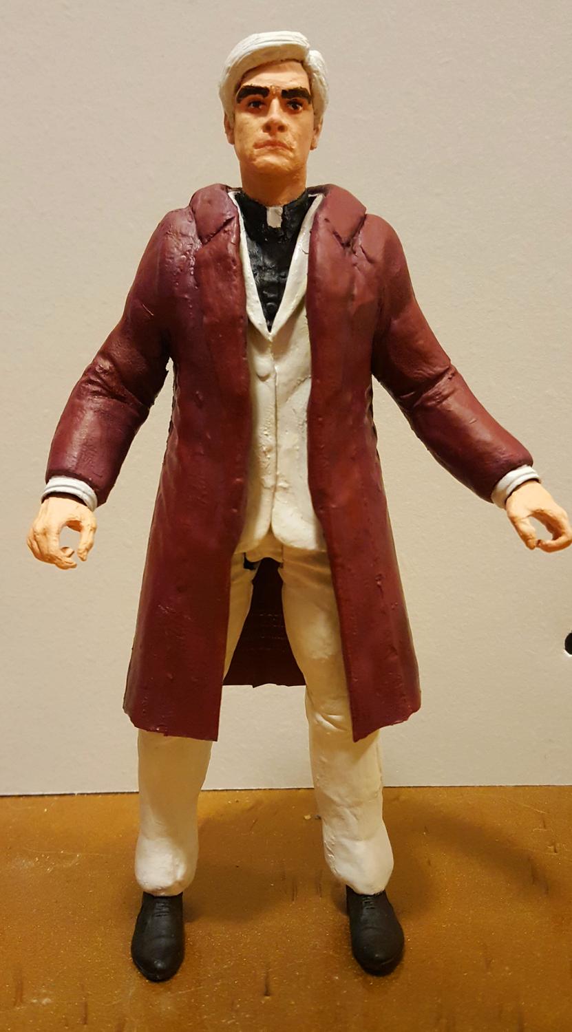 Next up is Father McGruder of "I kick ass for the Lord" fame. For some reason, I could not get the flesh tone to smooth out. The Zsasz figure just wasn't very receptive to paint. I sculpted the robe, pyjama bottoms, swapped shoes, sculpted the hair, and did a total repaint. It's not as good as I hoped it would be, but it could be worse. He blends in well at the back of the shelf with Lionel & Paquita, so, I guess, that's all that matters.