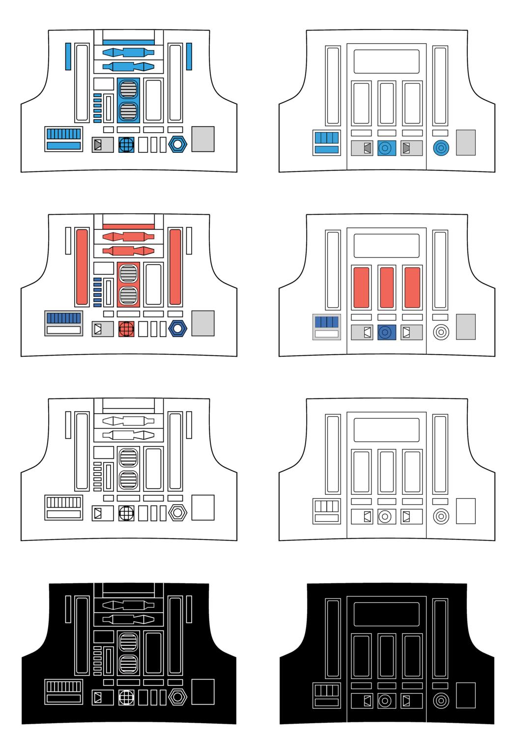 BONUS: Vintage Kenner R2-D2 and R5-D4 decals, and templates that you can color-customize.