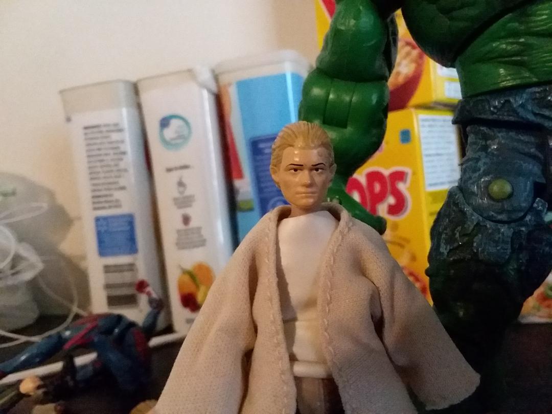 The head is a modified Legolas head from the 3.75 Hobbit line, since it was closest likeness of Holland I could get from this scale. The neck is wade of the RTJ hand.