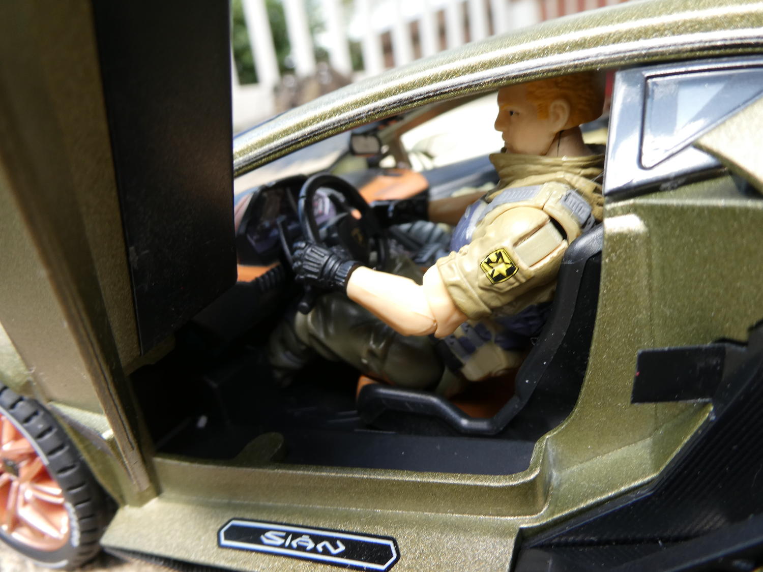 Had to cut away the floor board, and have to unscrew the whole top to fit the figures in. Can't use figures that have pouches or holsters, or wear any body armors. But it works. Opening doors, hood and engine compartment, with light and sounds.