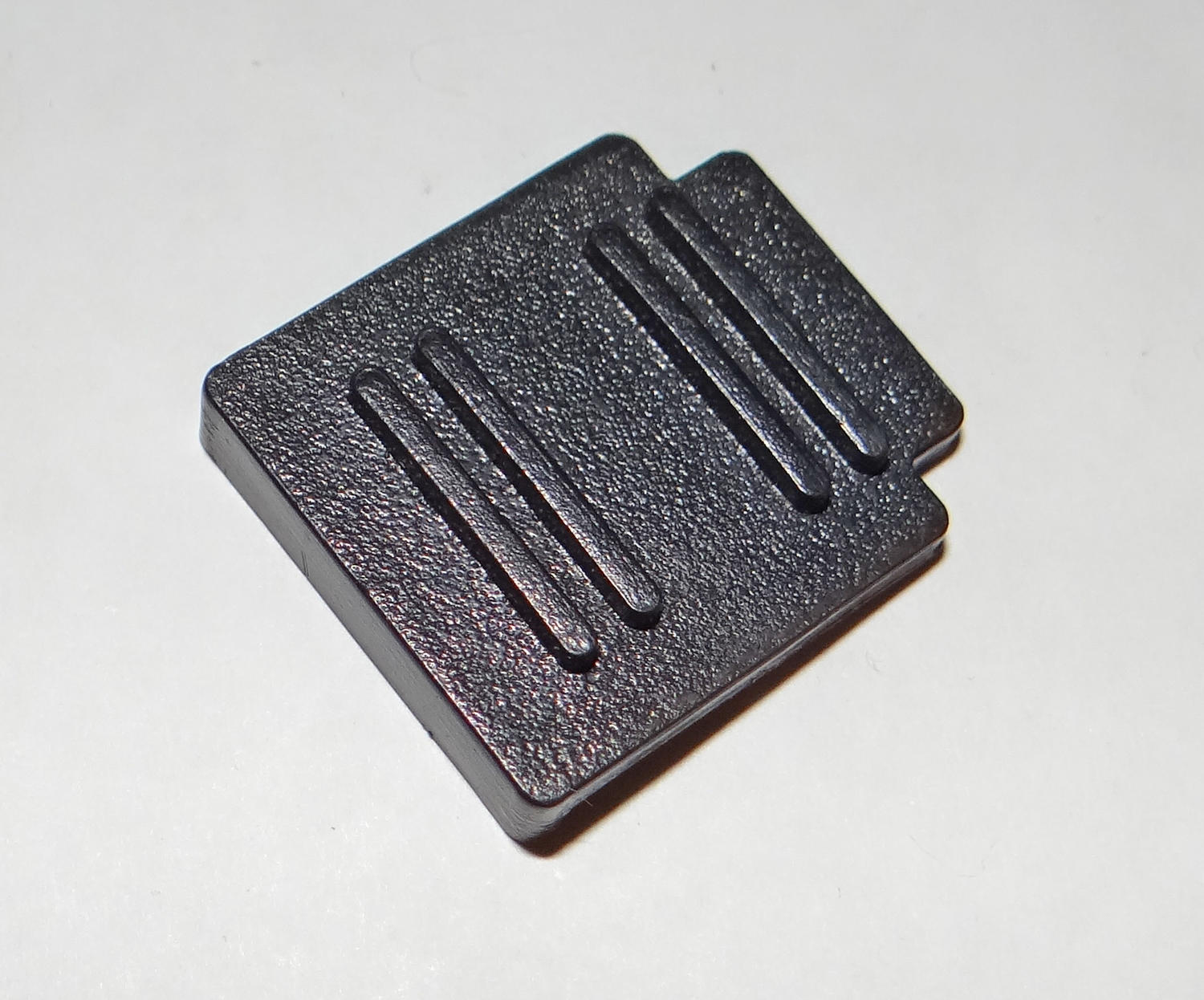Photo 3: Approx. .5" x .5" flat square piece with treads. Looks like it slides into something.