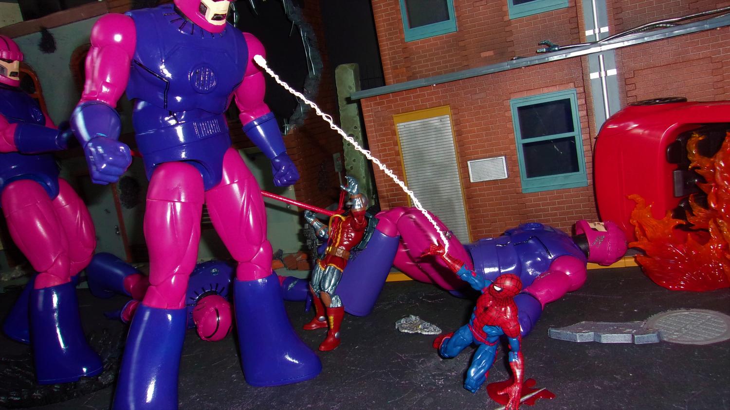 Can Deathlok save Spidey & himself from a Triad of Hunter/Killer Omega Sentinels?