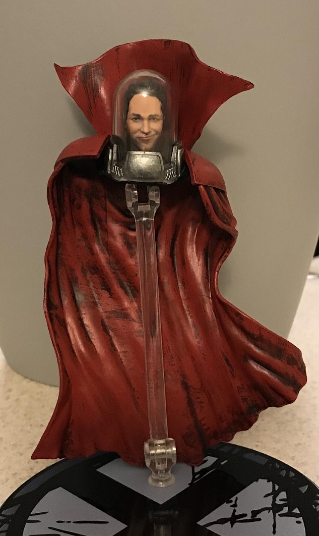So really loved the zombie What If episode and can't believe Legends skipped the chance to include a Lang head option with the Spiderman figure. So included 2 pics. One clean and one to show head locks into cape. My display plan will be to use magnets inside my glass case to make it look like it's floating.