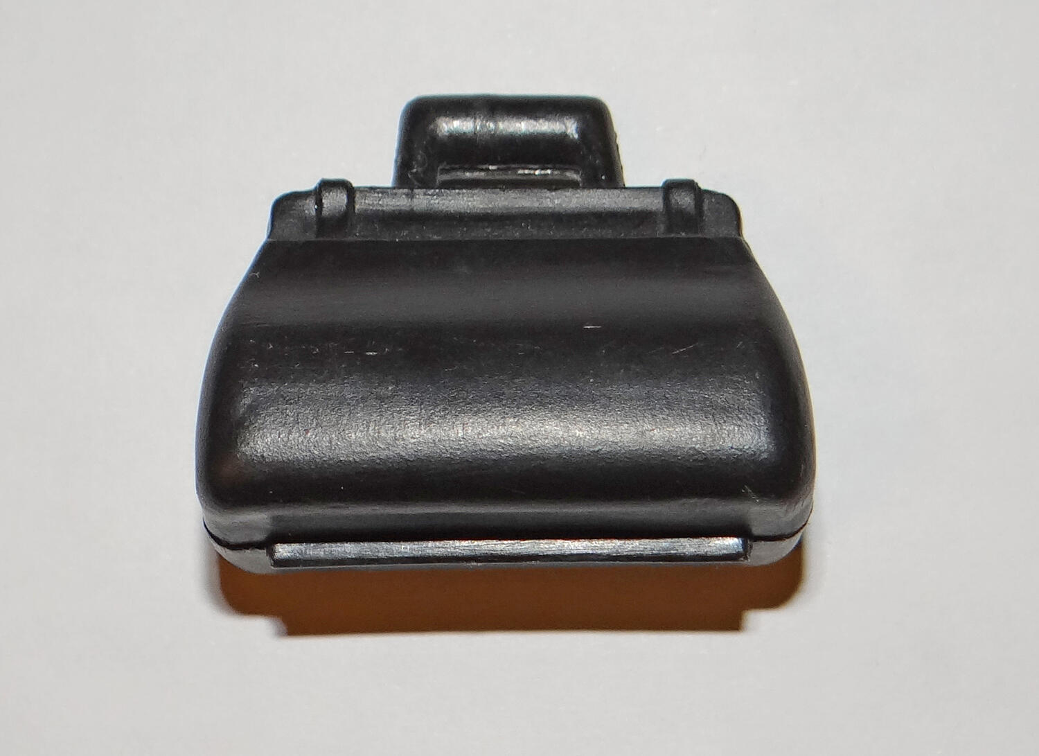Couple more mystery pieces. The first piece is some kind of video recorder or camera with a microphone and neck strap. Approx. 3" tall and made of hard, shiny black plastic. Looks like Marx but too small, would fit a Marvel Legends size action figure but I can't think of a vintage line with that size of figure. Looks like it would belong to a figure from the 1970s.