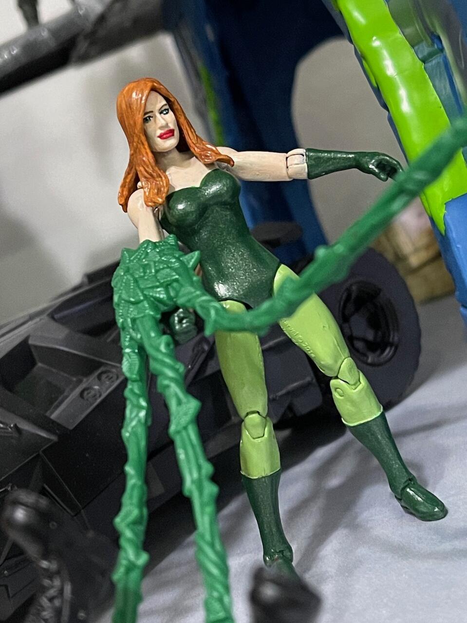 4. Poison Ivy! I can't wait on the toy makers to get around to releasing her. I went with a super simple approach, using her colors from BTAS. The ivy is from the old Uma Thurman movie figure.