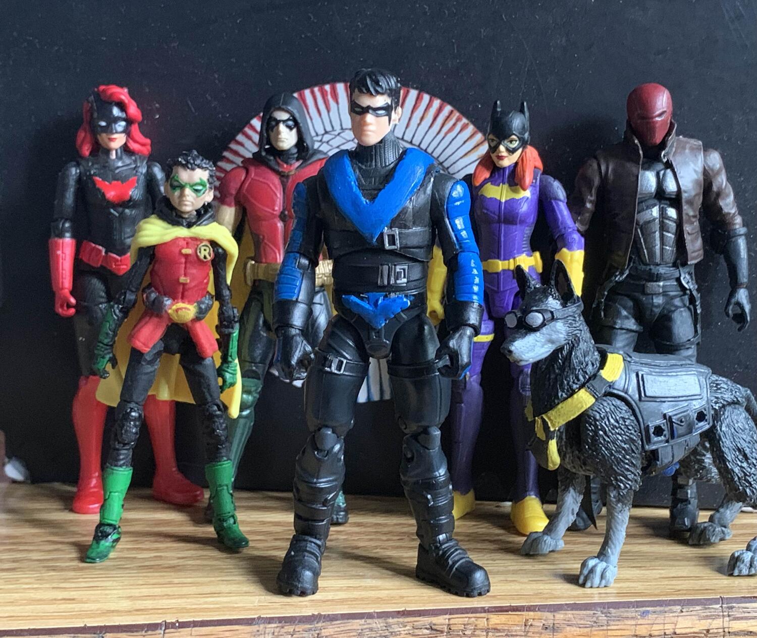 here's my new Nightwing addition to the BatFam. My old Injustice 1 figure broke yet again so I figured it was time to switch it up. The head is Spin Master and the body is Jazwares Fortnite Renegade Shadow.