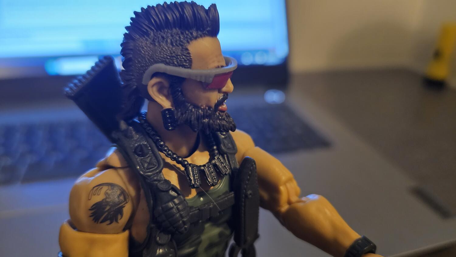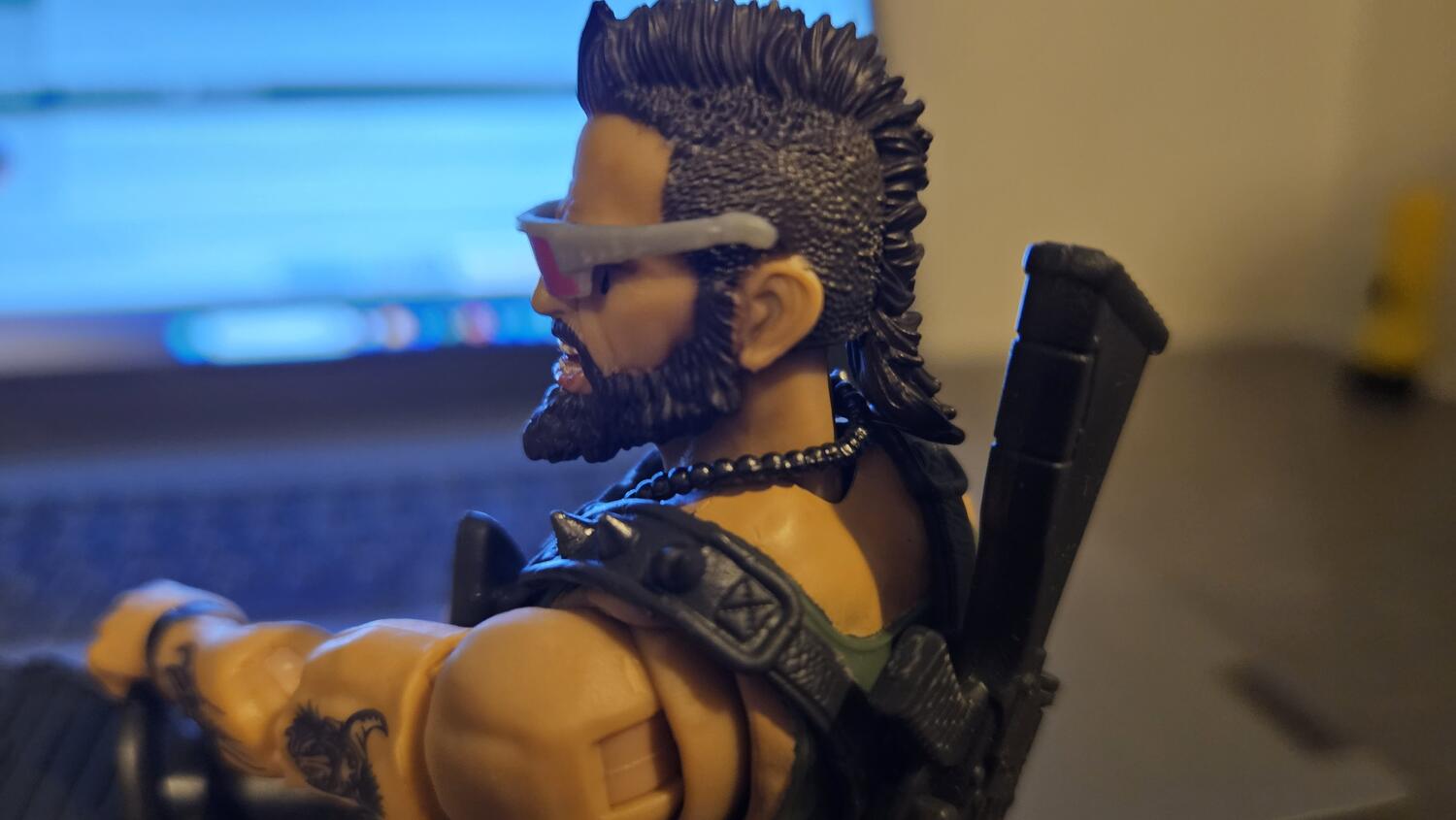Oh, Ripper arrived today from Amazon. He glasses are annoying as hell because I can't figure out how to attach the left side to his head. The right goes over the ear, but no idea where the left attaches to.