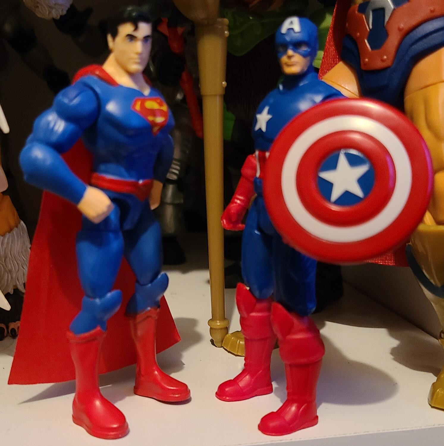 I hope Spin Master gives us an updated Superman figure. Superman next to the new Epic Heroes Captain America.