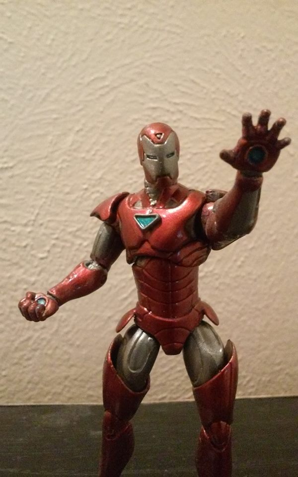 My favorite Iron Man armor has always been the Silver Centurion one. Guess I just love the Silver/Red combo. Anyway when the Iron Man 2 figures came out, I was stocked about them doing that armor. However I felt like I could improve upon it. So I did the usual pre wash and then painted the entire figure in silver. I then went over with clear red on the appropriate areas. I felt that the clear blue on the arc reactor and repulsers were a good contrast to the red and silver. I am quite pleased with the results and plan to do a whole series of Silver Centurion Iron Mans in various armors and post them here.