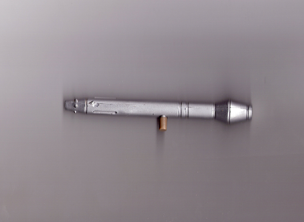 I got one of my own. I feel it should be obvious to me, but I can't recall it. No markings, molded in tan and painted silver. 4 inches long.