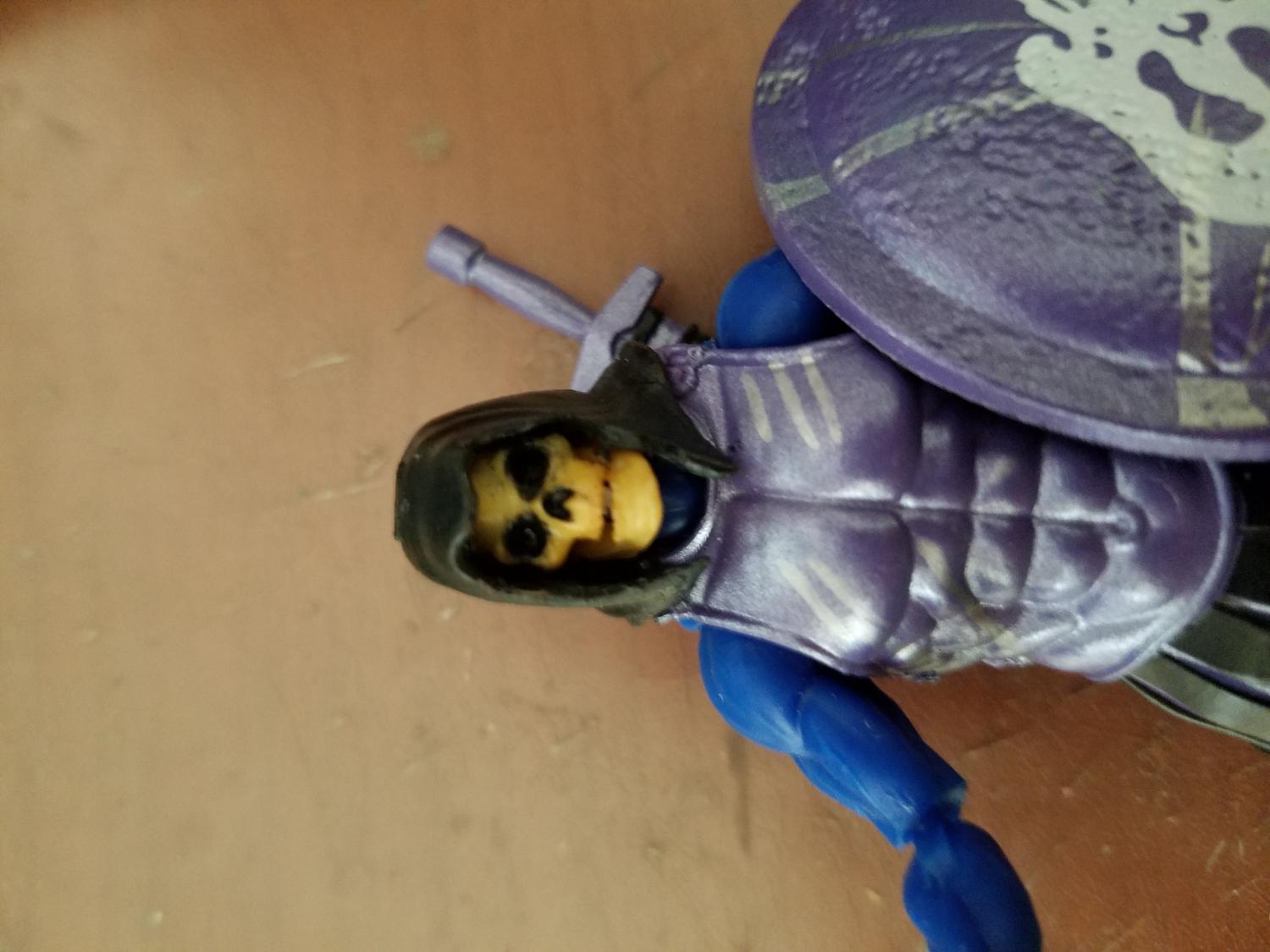 Skeletor made out of a Blue Hacks Blank, the Hacks River Styx Guardian, a Capsule Q DevGru Skeleton head and a McFarlane Toys Dracula Monster's set Bat head to make his staff look like it has Hordak's desiccated head on it in place of the usual Rams head staff.