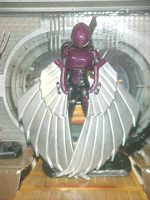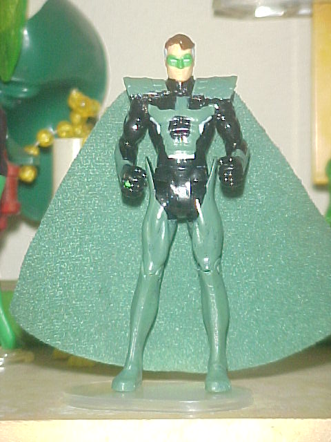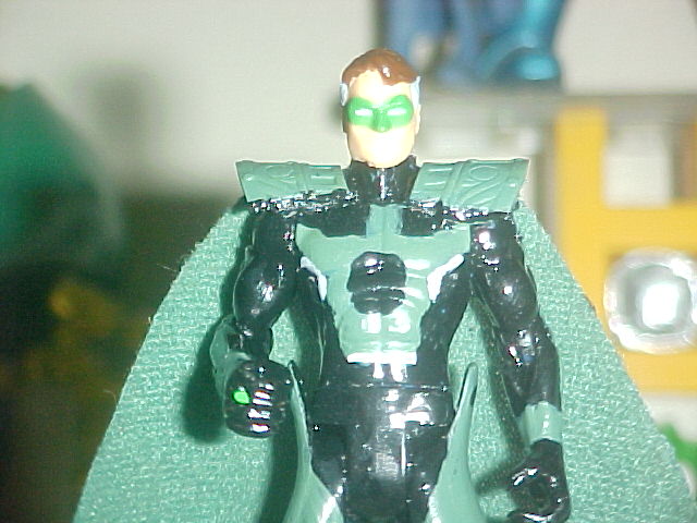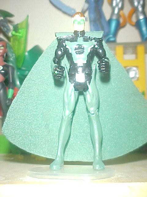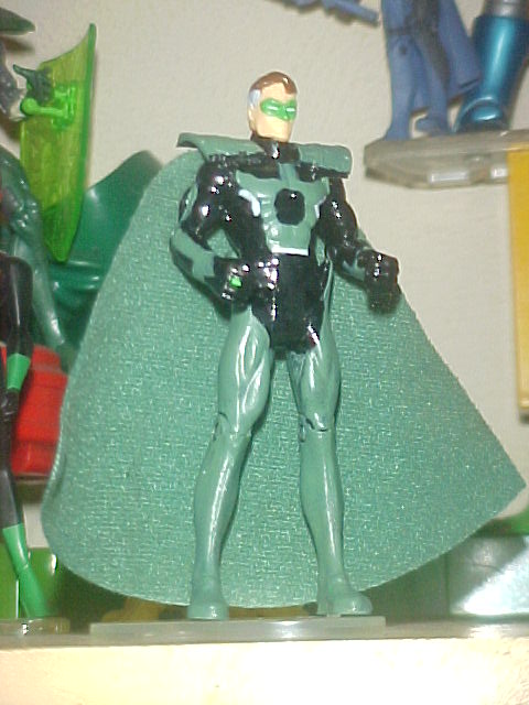 DCIH Parallax is made from an Omac Body, Hal Jordan Arms and legs, and a hal jordan head. The cape is from a Toy Biz Marvel super heroes Doctor Doom, and the shoulder pads are from a gundam. I made him keep the ring, so I adjusted his costume a shade to reflect that. |