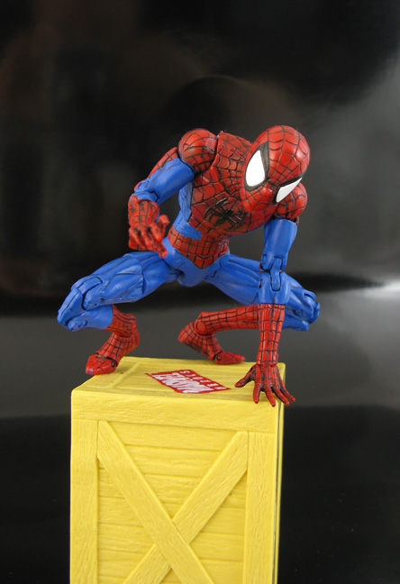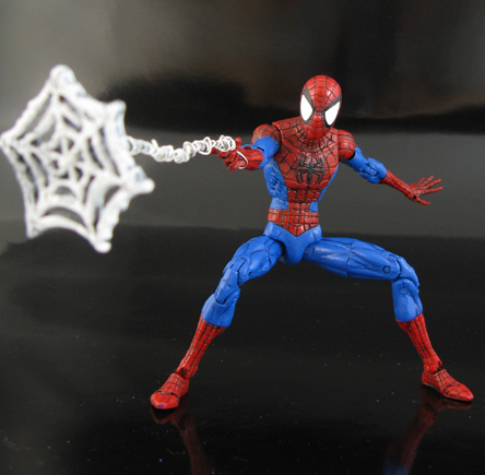 Here's the Spectacular Spiderman done 6" Marvel Legends style in his classic red and blue costume. After so many people requested him since seeing the black and red version they wanted this one. His upper torso from a shoot-n-trap Spiderman, arms and legs from a Spider Sense Spiderman, and modded shoulders/hips so he can get super articulated. I added web-blasts, magnets to his feet, and barrel to throw, and a wire web-line!