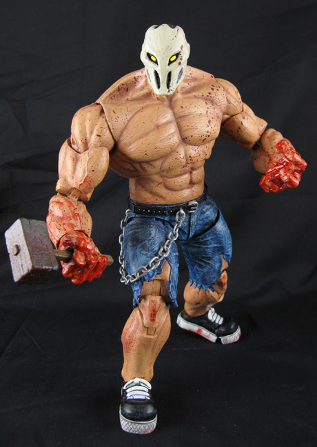 When I first saw the Studio Series Hulk I knew what he would be used for, the ultimate Splatterhouse Rick Taylor! This video game is one of if not THE goriest, bloodiest, and disturbing games out there so I really had to do Rick justice. The head is Hulk's shaved down noggin with a hand sculpted Terror Mask based on the Gamestop exclusive mask as reference. The feet were from a LCBH Clownface, drilled out and modded for the new 45 deg ankle joint. One belt, chain, and extremely bloody paint job later, Rick is ready to pummel his way through anything!