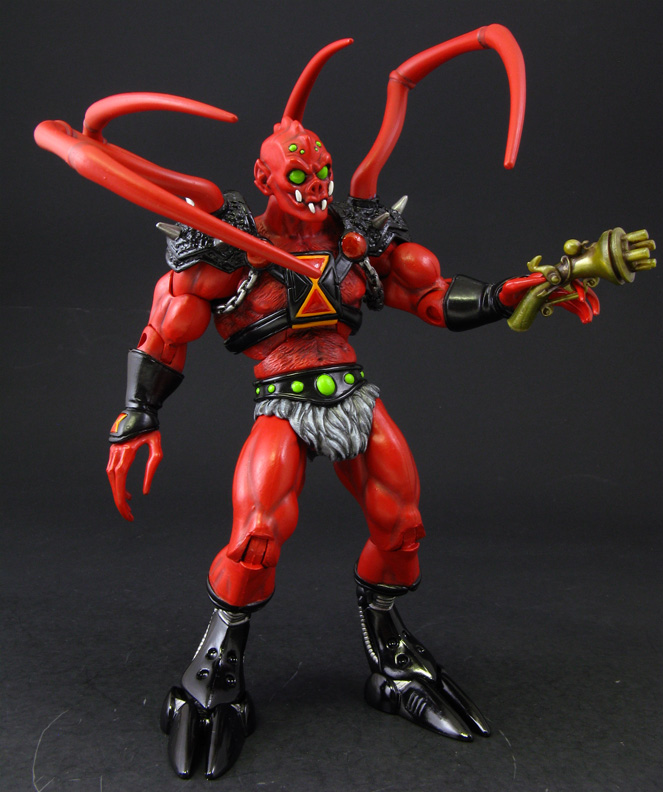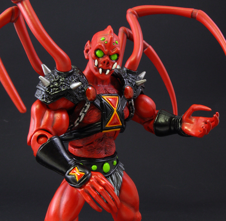 An original character creation, this week I present to you my custom Masters of the Universe Spydax, arachnid warrior. This custom MotU Classics figure was made from a Webster head, Zodak body, Hordak lower arms, TMNT movie Jaguar Statue guy hands, Digimon lower legs, Ben 10 Spider Monkey pincers, Ghost Rider armor, and sculpted chest/hand detail.