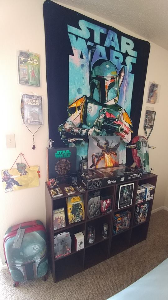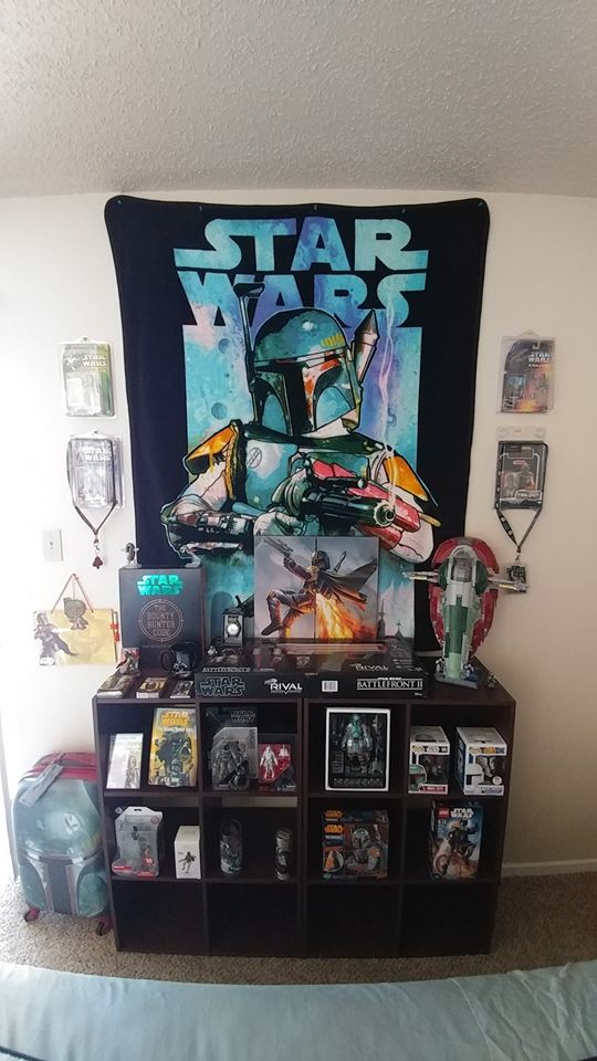 I moved into my new apartment back in January, and finally took the time to get my Boba Fett collection set up like I wanted it! Sorry if the photos came out poorly!
