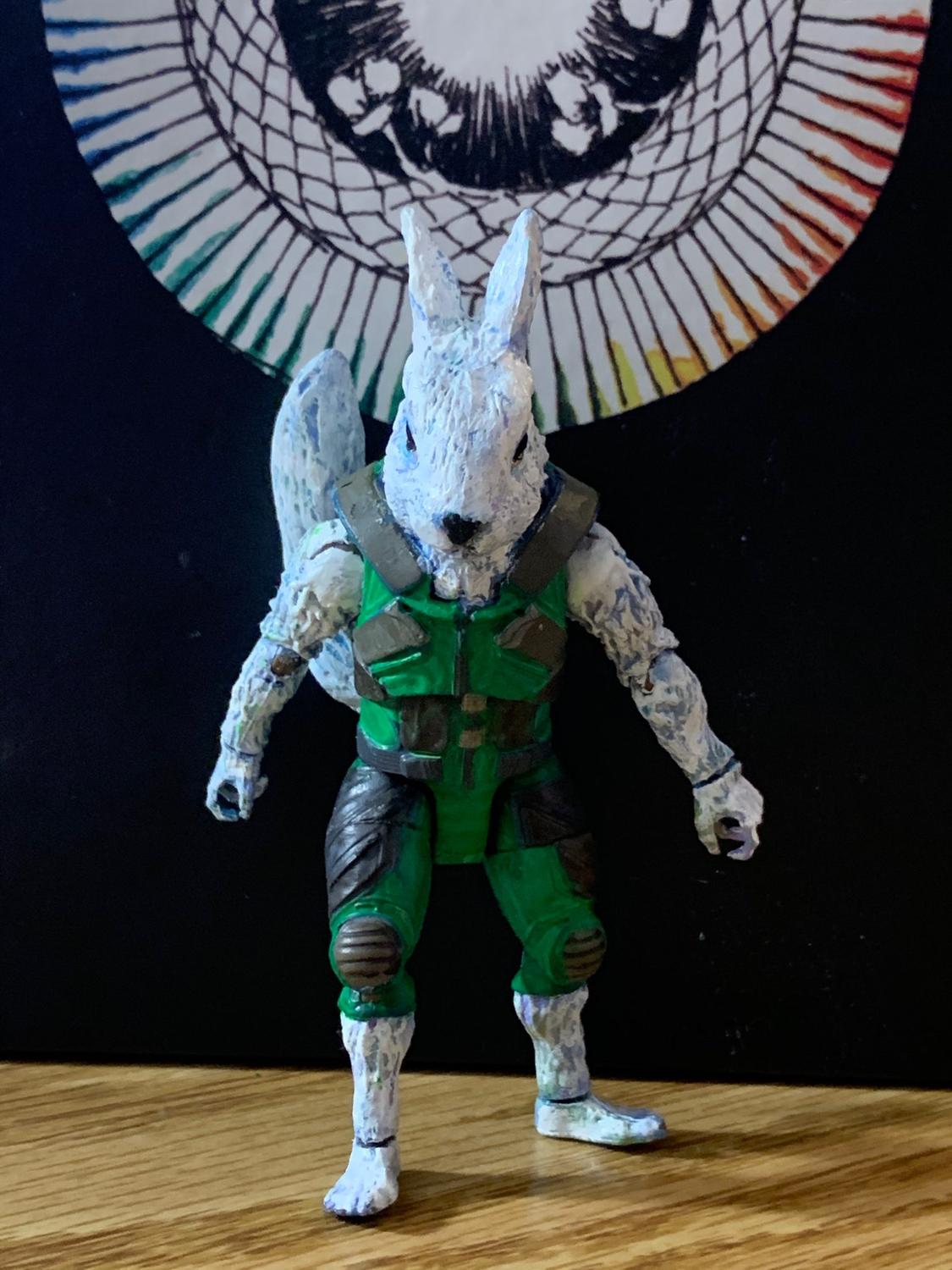I made a custom Kushiban figure for my homebrewed Star Wars 5E campaign! i hadn't even heard of this species before one of my players said they wanted to play as one. So I took the legends Rocket Raccoon, a Schleich bunny, and head swapped. I had to sculpt the neck to make it seamless and switch up the tail.