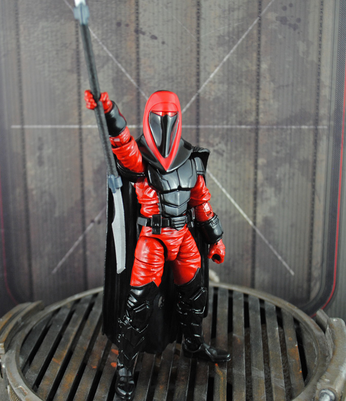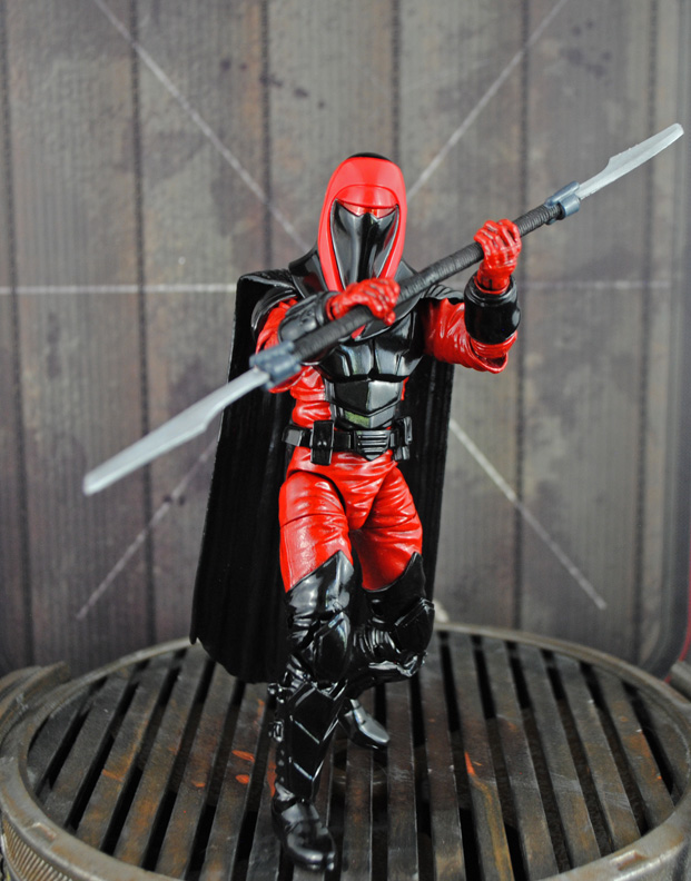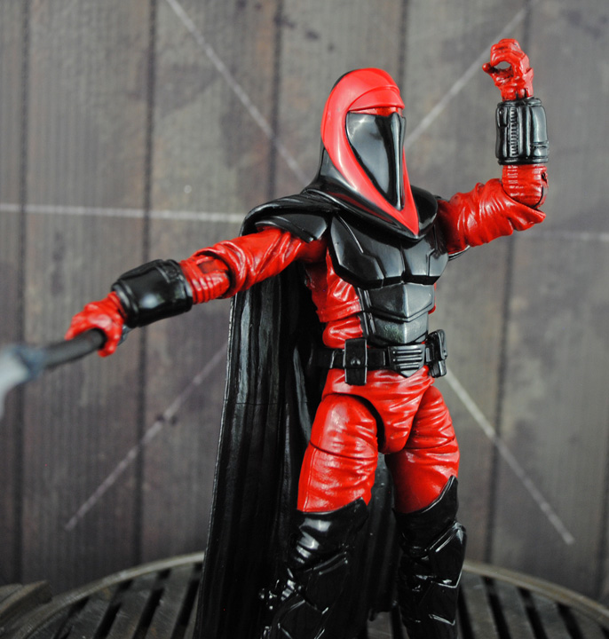 Straight out of the Crimson Empire comics comes the Imperial Royal Guard Carnor Jax created in 6" Black Series scale. Following last week's Kir Kanos I just had to make his nemesis. Using a black series Royal Guard body, Kylo Ren lower arms, sculpted gauntlets, I modded the helmet with the nosepiece and went to work. Hit Girl's bladed staff was perfect for his weapon and extra plastic was trimmed for added range of motion. Now Carnor Jax can track down and battle the traitor Kir Kanos to the death!