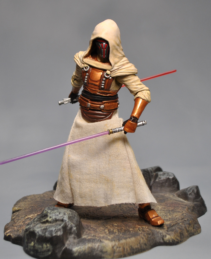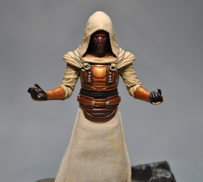 "Savior, conqueror, hero, villain. You are all of these things, Revan..." The Legacy of Darth Revan wasn't always dark, he was once a Jedi knight and here I'm bringing Jedi Revan to you in 6" Star Wars Black series form! This version of Revan was featured in the Star Wars Galaxy of Heroes mobile game and was created using the Darth Revan figure with modded machine man belt, Old Luke skirt, and various straps/buckles. The hood needed to be removed, the neck reworked, and a complete paint job with metallic armor finished him up.