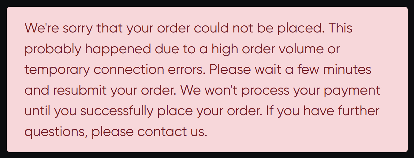 No matter what I do, or what browser I use, I get this when placing a preorder for Vader's TIE. It had no problem accepting my order for the Troopers 3-pack, but this damn thing just won't go through.
