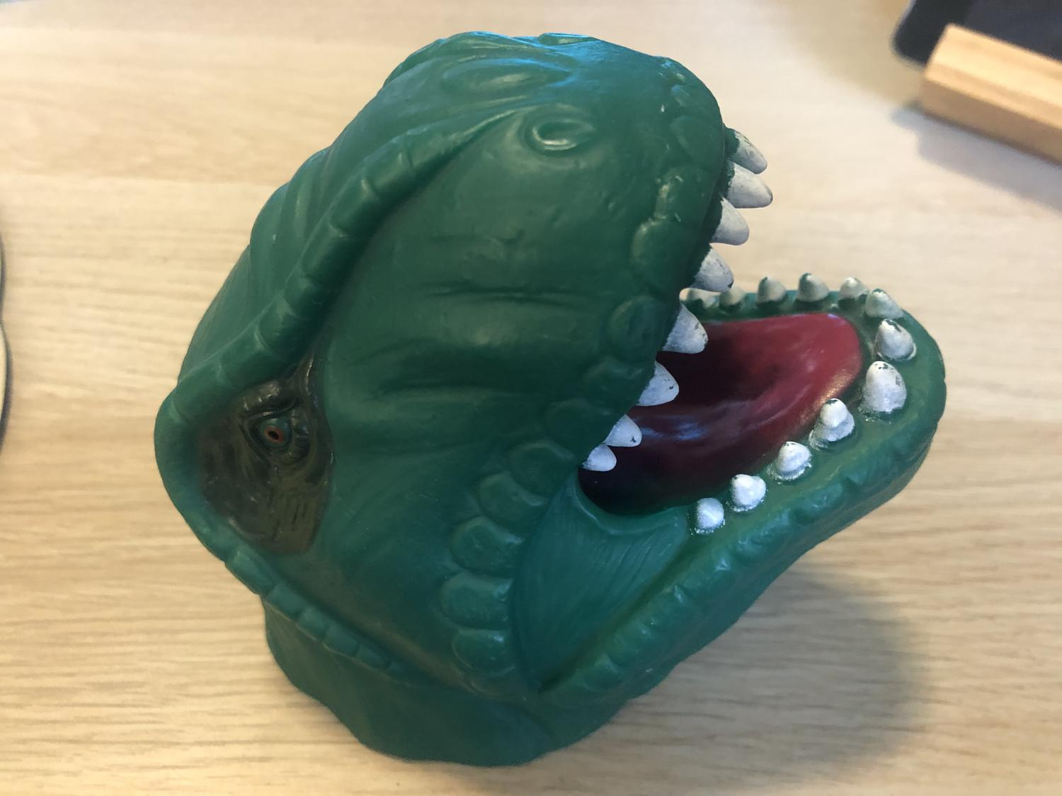 The dinosaur is a Illuminate T-Rex Head LED Light.