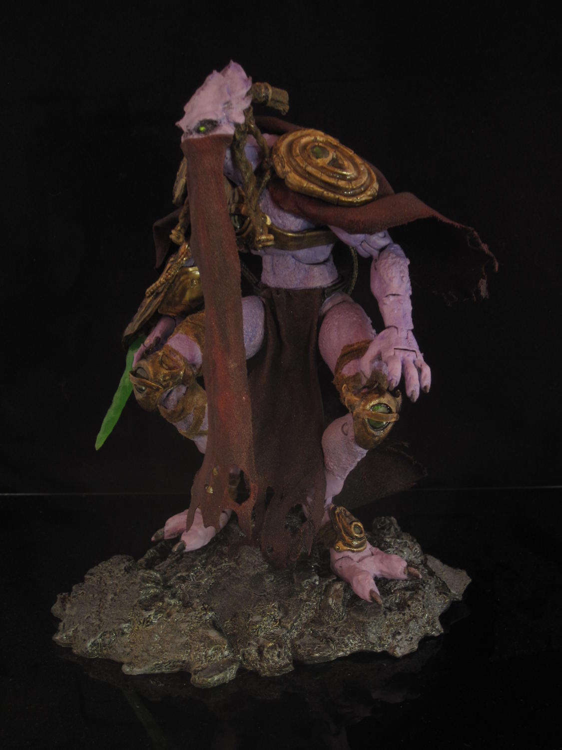 took a while, has scratch built armor, real fabric cloth/cape/?, removeable energy blade, hand sculpted head, hand braided hair? and a sweet paint job. enjoy.